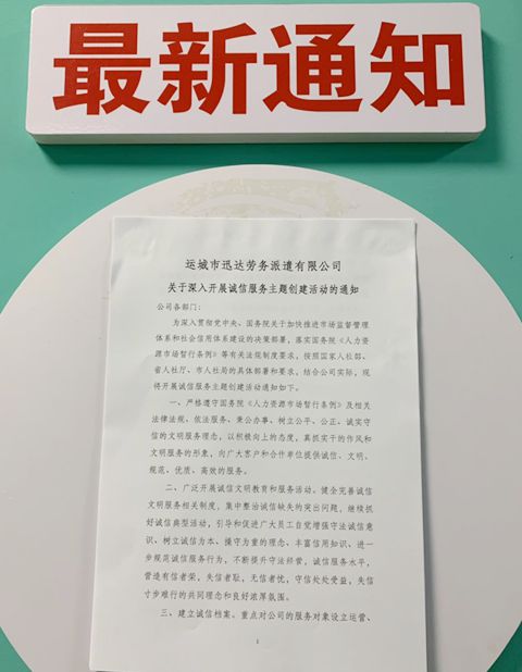 運城市迅達勞務派遣有限公司開展誠信服務主題創建活動